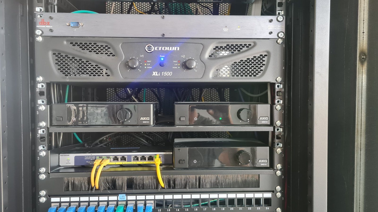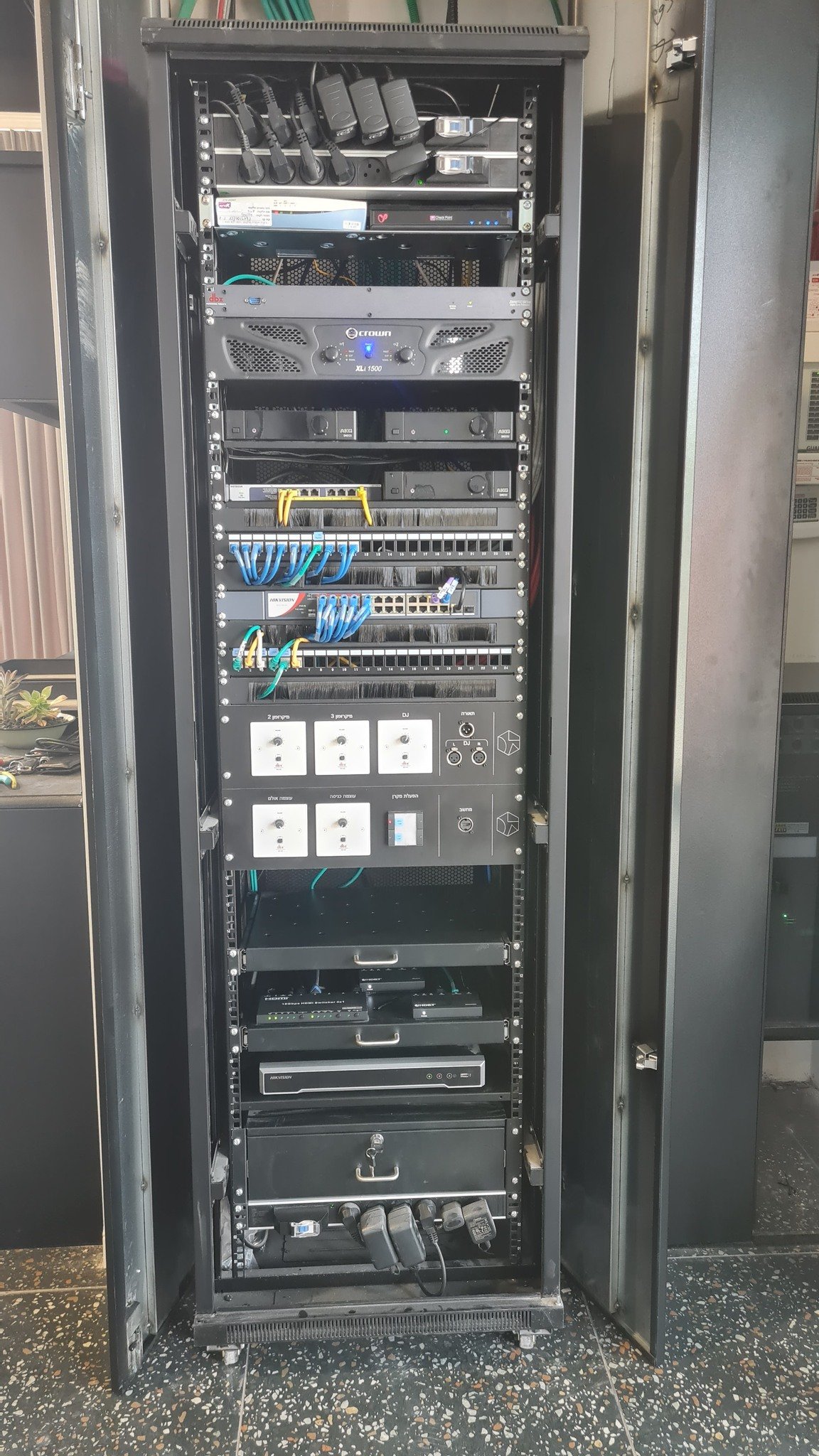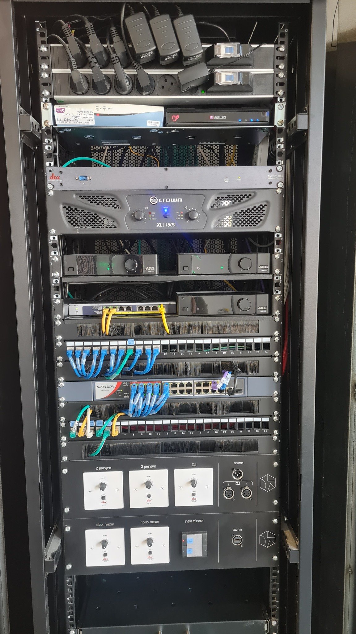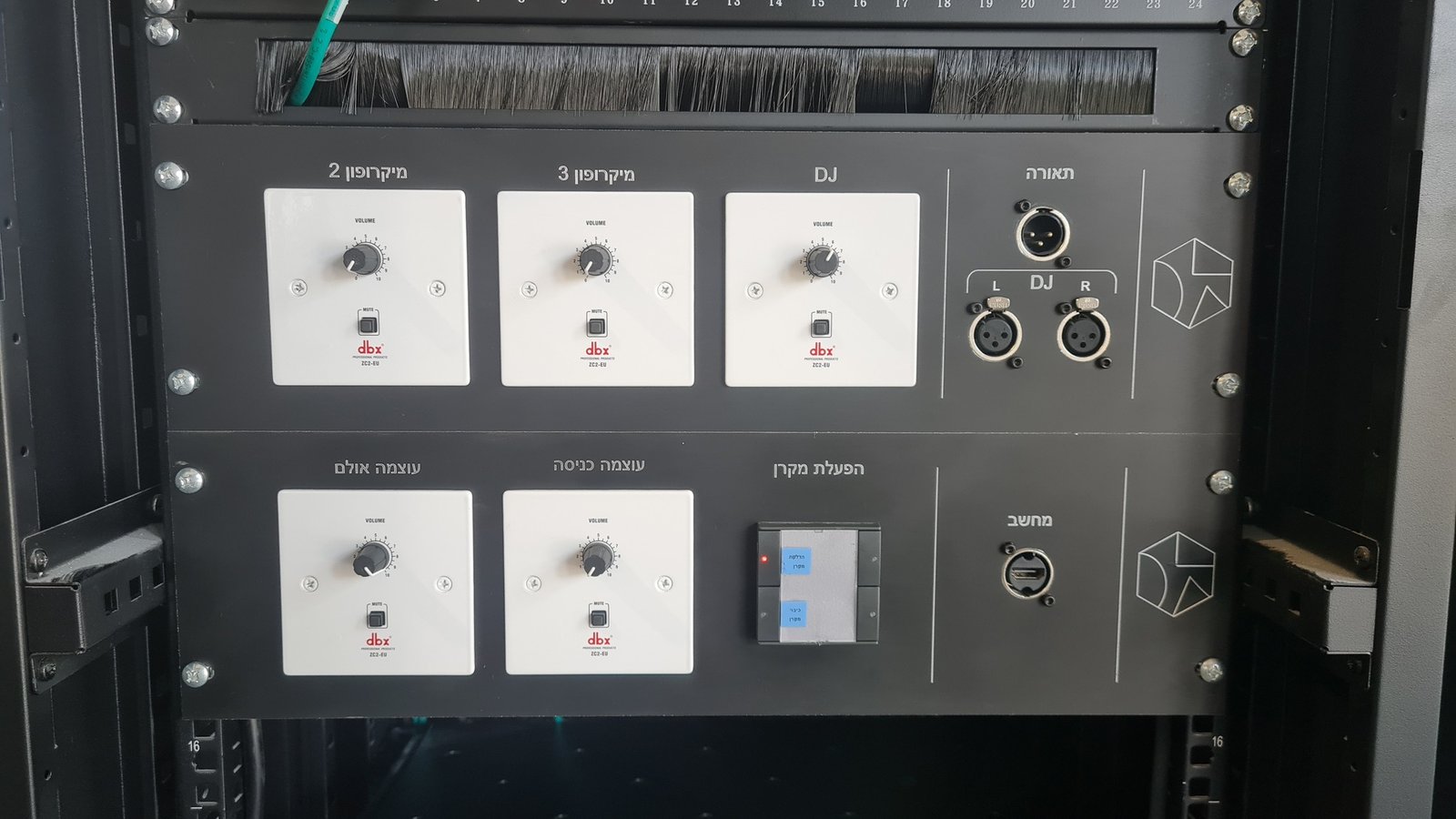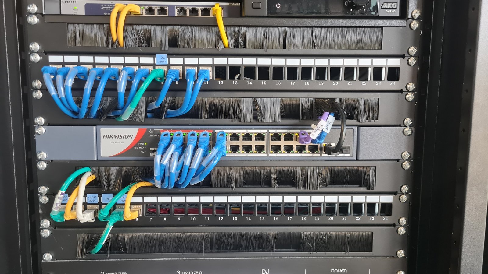 התקנת מערכת הגברה, הקרנה ומצלמות אבטחה לחלל רב תכליתי.