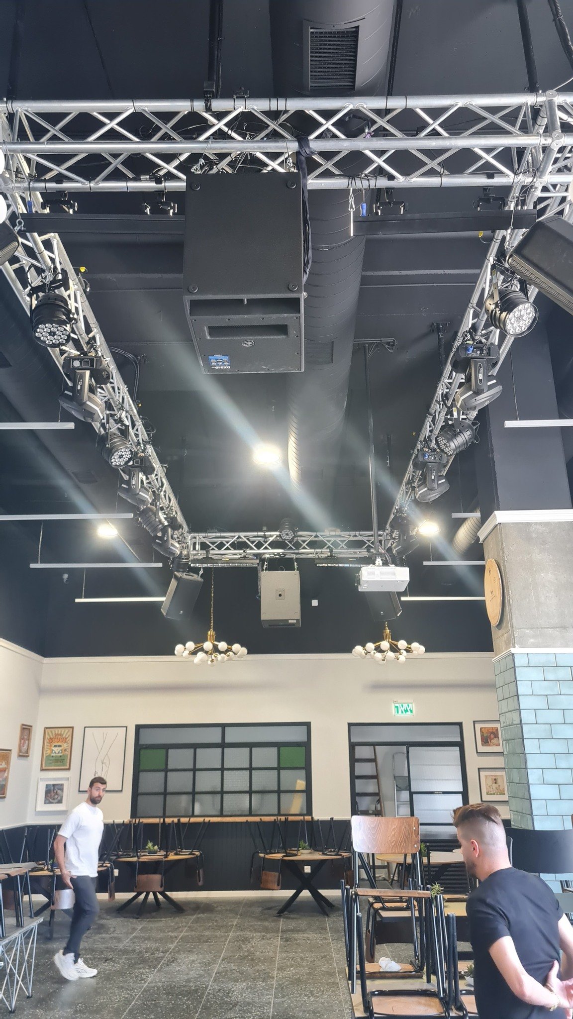 התקנת מערכת תאורה והגברה להופעות.