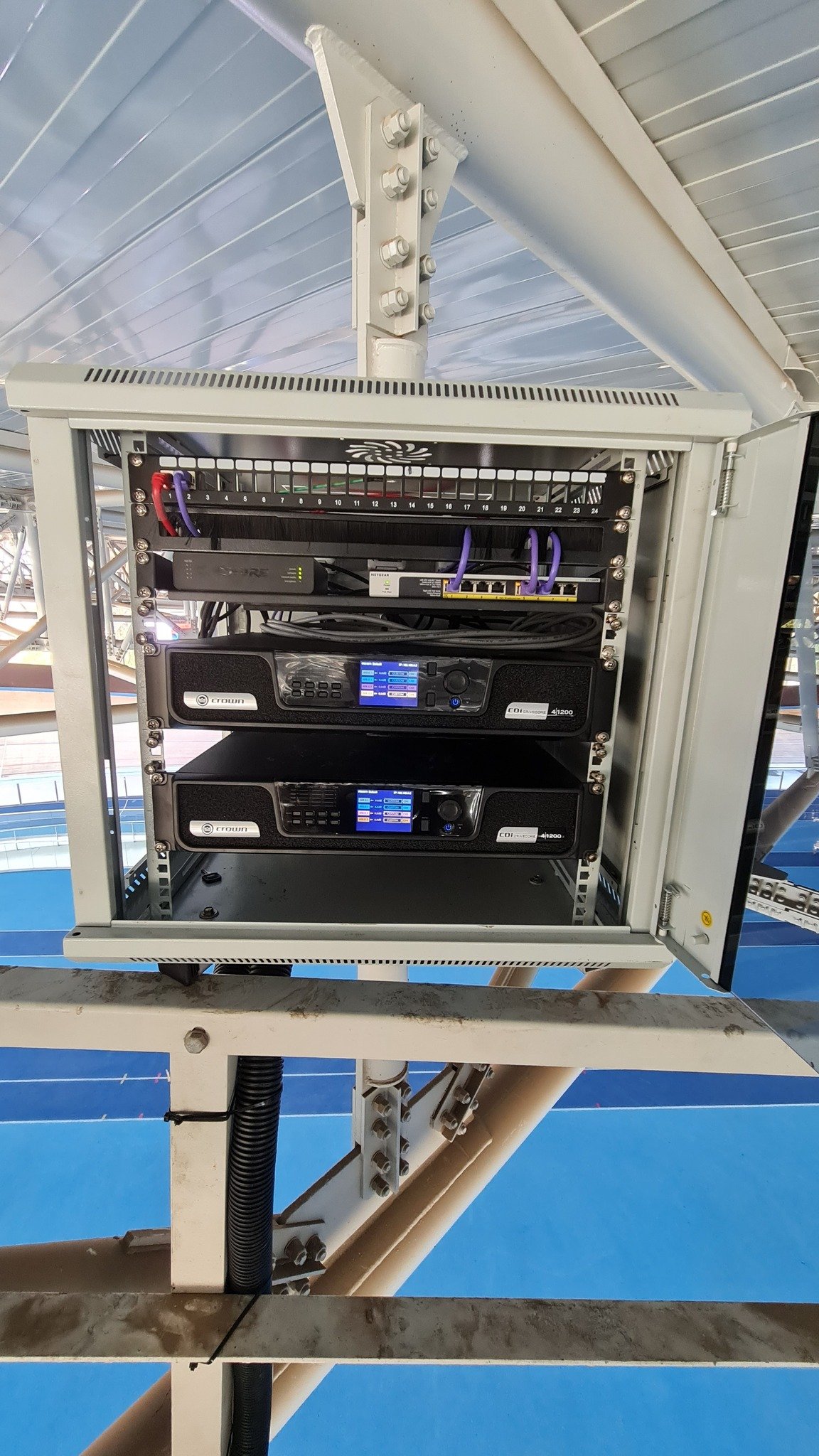 בפרויקט זה התקנו מערכת רמקולים לכמה איזורים ונשלטת על ידי עמדה שיכולה להתחבר גם בעמדת המפעיל בטריבונות וגם על המגרש , כל זה בחיבור קל ומהיר. אנחנו ביצענו את הפרויקט עבור חברה אחרת בתור קבלני משנה.