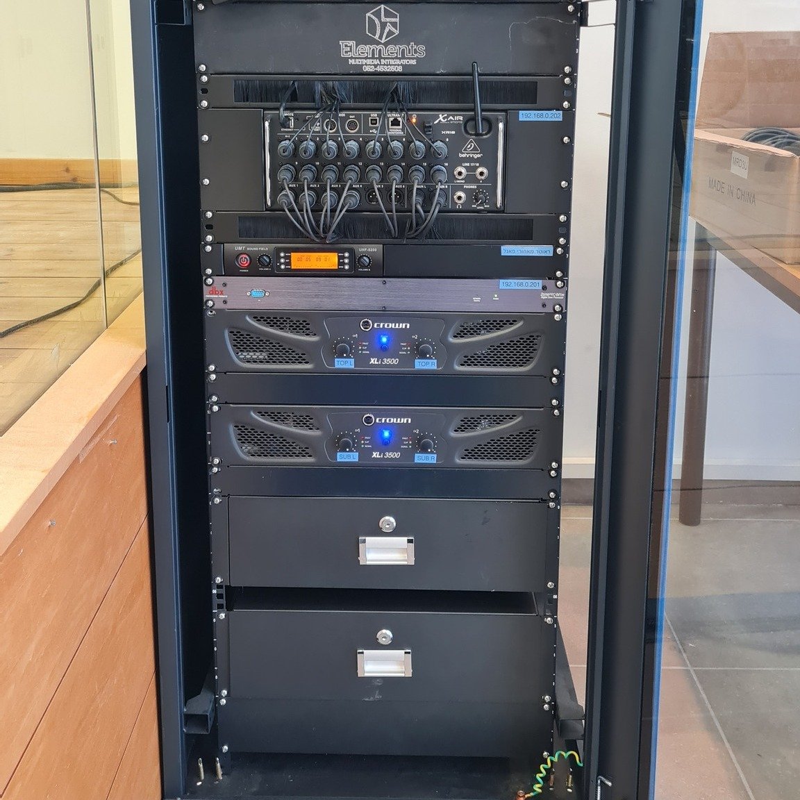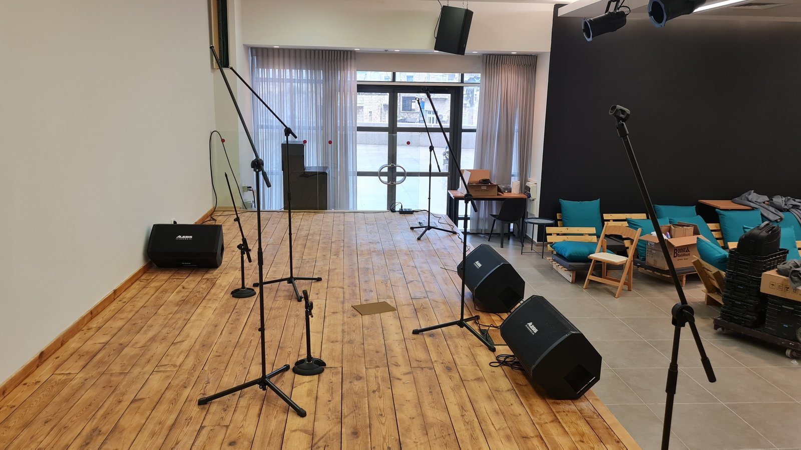התקנת מערכת תאורה והגברה להופעות.