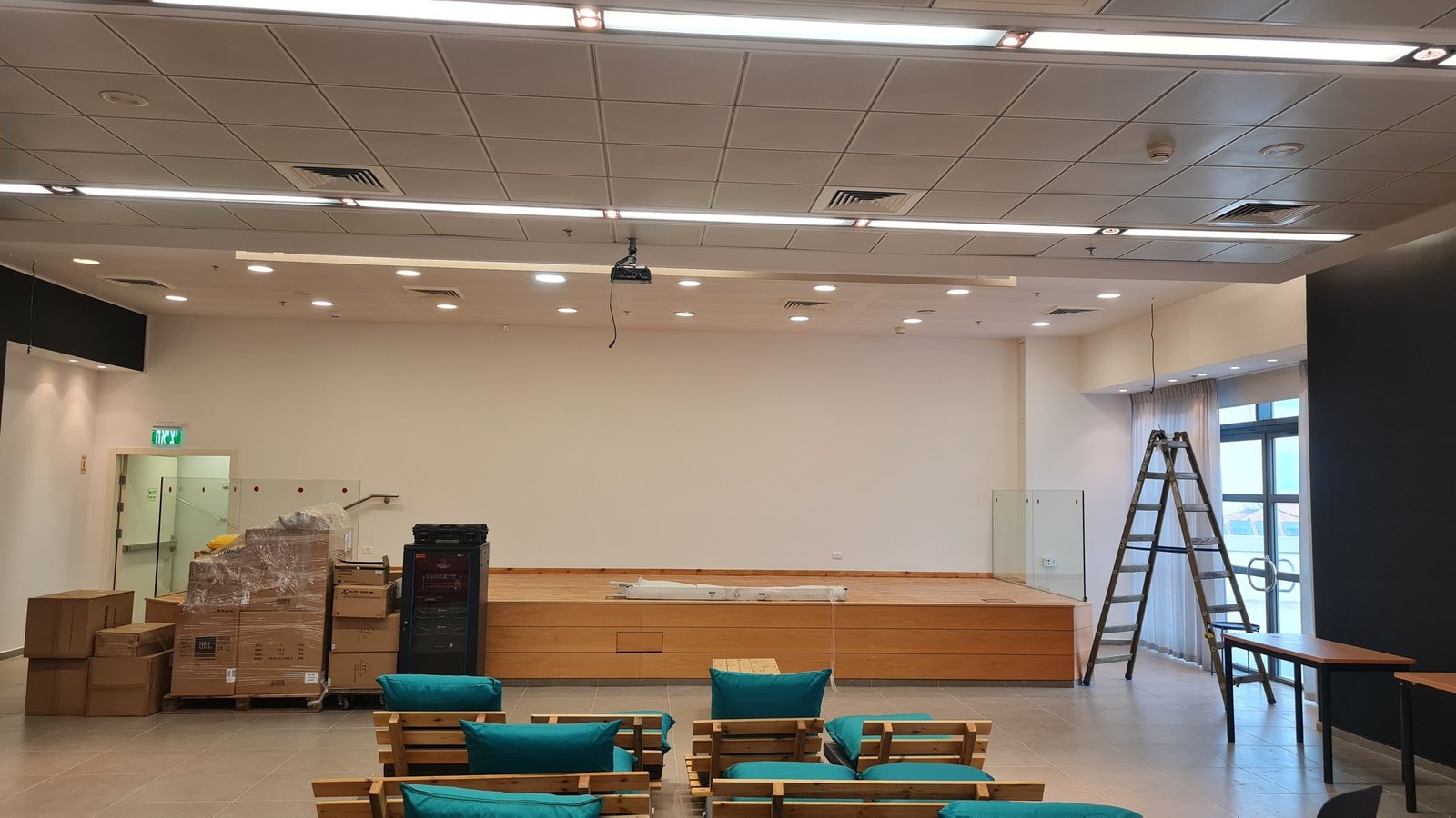 התקנת מערכת מצלמות אבטחה ורשת אלחוטית לאולם אירועים.